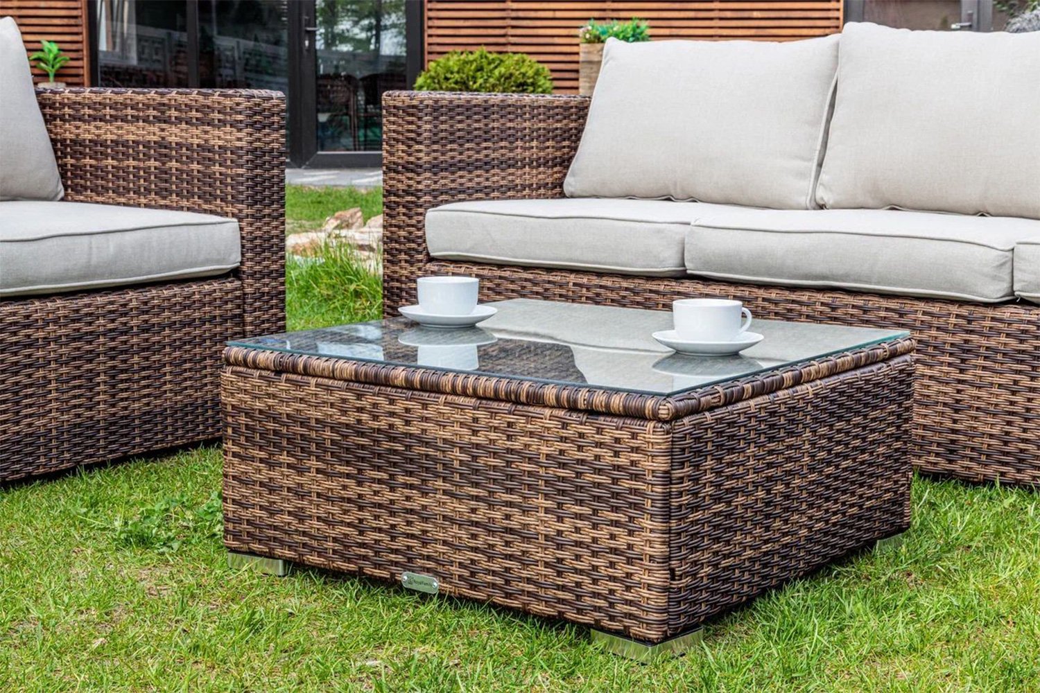 Комфортные места для сидения на природе – залог успешного отдыха. С помощью комплекта уличной мебели Karl коричневого цвета удастся создать лаундж-зону повышенного комфорта, ведь комплект состоит из трехместного дивана, двух кресел и низкого столика, который не будет перекрывать вид на собеседников, но сможет разместить на себе чашки с напитками. Особый комфорт от мебели удается добиться с помощью мягких элементов.