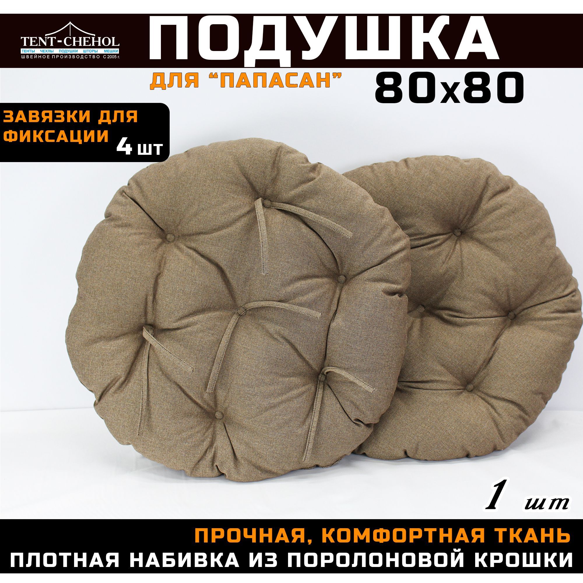 Купить Подушка для кресла и качелей 80 см, коричневая (рогожка) цена 2300 руб. в Москве и СПб с доставкой по России